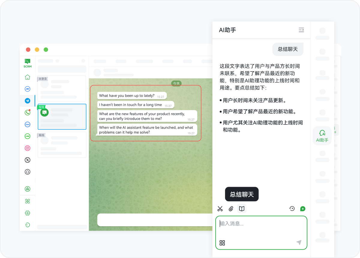 支持智能 AI 回复并自动翻译,有效提升互动效率,较传统模式实现翻倍增长。